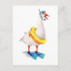 Aquarellmalerei von White Gose in Flossen mit Schwimmbrille und Schnorchelmaske.