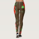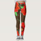 Rote, blumenblühende Damen Leggings mit schokoladenbraunem Hintergrund, der jeder Farbe personalisiert werden kann.