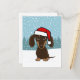 Schokoladenfarbene Dackel mit einer Weihnachtsmannmütze im Winterschnee. Zurück Text: Happy Pawlidays. Wir wünschen Ihnen und Ihren Pelzfamilien eine angenehme Urlaubssaison. Text kann mit Ihrer eigenen Nachricht angepasst werden. Schick gut Wünsche an diesem Weihnachtsfest und behalt auch dein Business top of mind. Diese niedliche Dackel Hund Postkarte ist perfekt für Tierärzte, Hundeschuhwanderer, Haustierzüchter, Hundeschlittenpflege und vieles mehr!