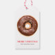 Gute Ferien! Feiern Sie die Urlaubssaison mit diesem Urlaub donut Thema Geschenketiketten. Es verfügt über einen schokoladenverglasten Donut mit weißen Schneeflocken und Schneedekorationen. Personalisieren Sie diese, indem Sie Namen und Nachrichten hinzufügen. Das ist perfekt für Gastgeschenke und Geschenke.