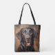 Ein nah-up Portrait eines Schokoladenschildkröten, in einem realistischen Stil gemalt. Der Hund hat einen freundlichen Ausdruck, seine Zunge ist leicht ausstehend und seine braunen Augen sehen direkt auf den Betrachter. Das Fell wird mit sehr viel Liebe zum Detail gerendert und zeigt die Beschaffenheit und Tiefe des Tiermantels. Der Hintergrund ist weich, unscharf braun, schafft ein Gefühl der Tiefe und konzentriert sich auf das Gesicht des Hundes. Perfektes Geschenk für Arbeitsuchende.