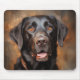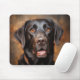 Ein nah-up Portrait eines Schokoladenschildkröten, in einem realistischen Stil gemalt. Der Hund hat einen freundlichen Ausdruck, seine Zunge ist leicht ausstehend und seine braunen Augen sehen direkt auf den Betrachter. Das Fell wird mit sehr viel Liebe zum Detail gerendert und zeigt die Beschaffenheit und Tiefe des Tiermantels. Der Hintergrund ist weich, unscharf braun, schafft ein Gefühl der Tiefe und konzentriert sich auf das Gesicht des Hundes. Perfektes Geschenk für Arbeitsuchende.