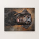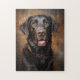 Ein nah-up Portrait eines Schokoladenschildkröten, in einem realistischen Stil gemalt. Der Hund hat einen freundlichen Ausdruck, seine Zunge ist leicht ausstehend und seine braunen Augen sehen direkt auf den Betrachter. Das Fell wird mit sehr viel Liebe zum Detail gerendert und zeigt die Beschaffenheit und Tiefe des Tiermantels. Der Hintergrund ist weich, unscharf braun, schafft ein Gefühl der Tiefe und konzentriert sich auf das Gesicht des Hundes. Perfektes Geschenk für Arbeitsuchende.