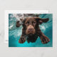 Schokolade Labrador Schwimmen unter Wasser Postkarte