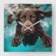 Schokolade Labrador Schwimmen unter Wasser Quadratische Wanduhr