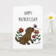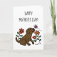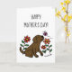 Schokolade Labrador und Green Mother's Day Card. Niedlicher und fröhlicher Labrador Cartoon von Naomi Ochiai aus Japan. Ein bezaubernder Schokolade Labrador Welpe Cartoon im Garten mit bunten Blume und einem Schmetterling. Kawaii Labrador Design für Chocolate Labrador Mama!