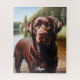 Gibt es eine Hunderasse, die mehr Wasser als einen Labrador Liebe? Dieses Design zeigt ein Schokoladenlabrador im Wasser eines Sees.