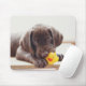 Schokolade-Labrador-Welpe mit Spielzeug-Ente Mousepad