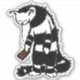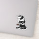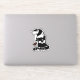 Der lustige Katzenschokoladenliebhaber-Aufkleber mit einem seltsamen Felincharakter, der über der Schokolade herumtobt, die er in seiner Pfote hält.