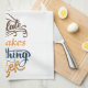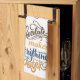 "Schokolade macht alles besser" erklärt der stylisierte Text auf jedem Ende dieses lustigen Küchentüchers. Die Textfarben sind dunkelschokoladenbraun, Gold und marineblau.
