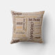 Ein süß gezapftes Kissendesign, das einen Textblock mit Schokolade, dunkler Schokolade und Mandeln in englischer, französischer und deutscher Sprache sowie andere Schriftart-Stilrichtungen, -größen und -farben auf beigem Hintergrund auf beiden Seiten des Kissens zeigt. In der rechten Spalte unter Wählen Sie Ihre Optionen können Sie auch das Lumbarkissen auswählen.