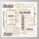 Dieser Ausdruck bietet den Traum eines Schokoladenliebhabers mit einer Wortwolke aus Schokolade, dunkler Schokolade, Mandeln in Englisch, Deutsch und Französisch und anderen Worten in einer Vielzahl von Schriftart Stilen, Größen und Farben. Dieses Design ist auch in den Orten Matten, Servietten und eine Vielzahl anderer Produkte erhältlich. Klicken Sie unter Bearbeiten und Hintergrund auf Anpassen!, um eine andere Hintergrundfarbe als weiß auszuwählen. Macht vielleicht ein großartiges Haus Erwärmung Geschenk.