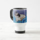 Original Aquarellmalerei von Sandra Gale, mit einem Schokoladenpoint Siamesen Katze, umgeben von blauen Blumen auf einem hellen lila Hintergrund. Blume sind blaue Hydrangea, blaue Mohn und eine blaue Rose. Das Design ist perfekt für Katzenliebhaber und diejenigen, die die siamesische Rasse besonders mögen. Ideal für Schlafzimmerwandkunst oder gerahmt mit passendem Bild. Die passende Aquarellmalerei eines Blaupunktes Siamese ist auch in meinem EverIrisPrints Shop erhältlich.