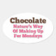 Schokolade, die Art und Weise, wie die Natur Montags wieder gut macht. Ein niedliches, lustiges, humorvolles Schokoladenkuchen-Sprichwort zitiert Design in rosa und braun Text Schriftart.
