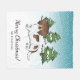 Desteis originelle Cartoon-Illustration einer niedlichen langen Haar Schokoladenbraun und einem piebaldfarbenen Fell Dackel züchten Hund. Der Hund ist in einer Winterlandschaft mit drei grünen Tannenbäumen und fallendem Schnee untergebracht. Der Hintergrund ist ein blaues bis weißes Gefälle, das das Design des kalten Wintertages verleiht. Es gibt auch einen personalisierbaren Textbereich, der jetzt "Frohe Weihnachten!" in einem schönen Script-Schriftart liest. Darunter befindet sich ein weiterer personalisierbarer Textbereich für einen Familiennamen oder einen anderen benutzerdefinierten Text.