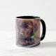 niedlicher Schokolade-Labrador-Welpe aus dem Fenster