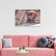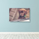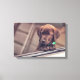 niedlicher, schokoladenbrauner Labrador Welpe, der aus dem Fenster schaut