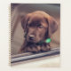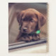 niedlicher, schokoladenbrauner Labrador Welpe, der aus dem Fenster schaut