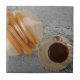 Eine Schale starke, reiche Schokolade diente mit den churros, die auf dem äußeren und das weich auf dem Innere crunchy sind. Einer der köstlichsten Imbisse in der Welt. Gefunden entlang den Straßen und in den Cafés von Spanien sowie von vielen Plätzen in Lateinamerika. Hier dargestellt mit dem Hintergrund eines zerstoßenen Metallzählers an einer lokalen Kaffeestube.