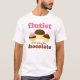 Niedlicher Flötenentwurf hat kleine Kuchen und Flötenzitat, das Flutist sagt - spielt für Schokolade. Süßer Entwurf ist gerade nach rechts für Mädchen und Frauen, die die Flöte spielen.