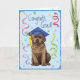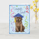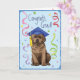 Beglückwünschen Sie Ihren Lieblingsabsolvent mit einem Geschenk, das einen niedlichen, glücklichen Schokoladen-Labrador-Retrieverabsolvent kennzeichnet, der einen Mortarboard unter einer Aufregung von Confetti trägt.