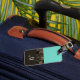Gepäckanhänger mit original gemischten Wasser-Media-Farbblöcken Streifen bedruckt.