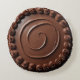 Es handelt sich um ein rundes, schokoladenförmiges Kissen.