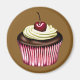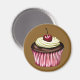 Magnet als eine detaillierte Abbildung eines Schokoladenkuppchens mit Schokoladenkuchen Zuckerguss, einem Schwirl Sahne und einer Kirsche oben - hungrig doch?