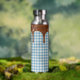 Schokolade tropfen auf blauem und weißem Gingham Hintergrund. Der Hintergrund kann geändert werden.