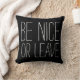 Hier ist ein tolles dekoratives Kissen "BE NICE OR VERLASS"