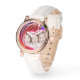Eine elegante goldene Rose mit einem schönen roten, blauen und rosa abgestrafften Design. Diese hübsche Armbanduhr kommt mit einem eleganten weißen Lederband. Das Uhrengesicht hat eine Textnachricht und ein Foto. Text und Fotos sind anpassbar und können leicht personalisiert werden, um Ihren Bedürfnissen gerecht zu werden. Diese einzigartige und schöne Uhr ist das beste Geschenk für Ihre Ehefrau, Freundin und Mutter. Ein tolles Geschenk zum Geburtstag, Hochzeit, Jubiläum, Feiertag, Valentinstag, Muttertag und für dich selbst! Ein wirklich einzigartiges Schmuckstück, das jede Frau liebt und besonders macht!