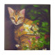 Keramik Kachel in einer Illustration einer wunderschönen Abessiner Katze in einem Abend Garten, mit nachts blühenden Blume