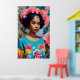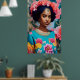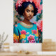 Ein Bild von einer wunderschönen alten Friseurin mit Blumenmotiv.