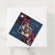 Schönes und chic dunkelblau und goldgelb geometrisches Gitter mit schönen bordeauxroten Aquarell Blumenstrauß und Foto Hochzeit speichern das Datum Ankündigung Gefallen Tag mit vollem Foto Rückseite des Tags.