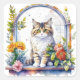 Whimsical Aquarell ai art cat mit niedlichen großen Augen in einem Fenster voller hübscher Blume Aquarellkunst.