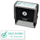 Die Briefmarke aus Gummi ist mit der motivierenden Feedback-Nachricht "NICE WORK!" und einem eigenen Tutor-Namen versehen. Es verfügt auch über ein dekoratives Auswahlfeld. Es könnte von einem Lehrer oder Erzieher verwendet werden, wenn sie Aufgaben markieren, um anzuerkennen, dass der Schüler eine großartige Arbeit geleistet hat.