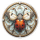 Herrliches Art Deco Bild eines Ladybugs mit Diamantakzenten auf ihren Flügeln und dem Oberkörper. Hintergrund ist eine hübsch hellblaue Vintage Kachel.