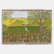 Eine Fleece-Decke mit einem schönen Bild einer Naturszene: Ein Vogel sitzt auf einem verwitterten Zaun, Wildblumen wachsen um den Zaun herum, ein Bauer auf einem Traktor bearbeitet sein Land, Bäume verlieren Blätter und Ackerland in verschiedenen Farben. Originalkunstwerk von W.B.