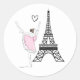 Schöne Ballerina und Eiffelturm Tanzballett Runder Aufkleber