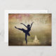 Dieses einzigartige Postkartendesign besticht durch eine elegante, schöne Ballerina, die auf einem See mit weißem Schwan tanzt.