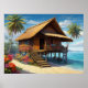 Schöne Bambushütte am Strand von Tropical Island Poster