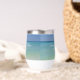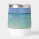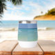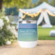 Dieser wunderschöne Trauweine-Schuster am Strand zeigt ein ruhiges Foto vom Ozean Horizont für eine Hochzeit in Urlaubsort an der Küste während des Sommers. Leckerei deine Gäste zu diesem herrlichen tropischen Empfang, die Gaumenfreude am Meeresnachmittag auf deiner Lieblingsinsel mit dieser hübschen Fotografie. Komplett mit schicken weißen Skripten für ein hochwertiges Küstenbild.