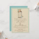 Eine schöne Einladung, dieses Stück ist auf einem schönen beigen Hintergrund auf der Vorderseite erschaffen. Der Schriftart ist braun mit einer braunen Kerzenlampe und einer hübschen Kerze im Inneren. Die Kerzenleuchte hat schöne Pfirsich und blaue Blumen. Es gibt ein blaues Rechteck, das an den Text angrenzt. Personalisieren Sie Ihre Hochzeitseinladungen noch heute!