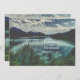 Diese Hochzeitseinladung zeigt ein schönes Foto eines Sees, umgeben von Bergen. Der Himmel ist voller bezaubernder Wolken, die sich im Wasser widerspiegeln. ^