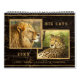 Schöne Big Cats Fotografie; Löwen, Tiger, Leoparden und Geparden. Für diesen Kalender wurden nur die schönsten Wildkatzen-Fotos ausgewählt. Mit goldenen Farben. Die neutralen Farben werden in jedem Raum des Hauses gut harmonieren. Bereit für das Jahr.