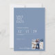Dieses schöne Blau Save the Date wird Ihre Gäste sicher glücklich machen. Ein einfaches, klassisches Design mit modernem Ambiente. Das Foto auf der Rückseite ist ein echter Genuss für Ihre Gäste! Wenn Sie weitere Anpassungen wünschen, senden Sie uns bitte eine Nachricht.