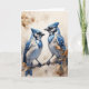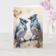 Schöne blaue Jay, die auf einem Baumarm zwischen den Wolken und braunen Blätter sitzen. Blank Grußkarte zum Geburtstag, Jubiläum, neues Baby, danke, etc.