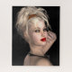Dieses Puzzle mit einer wunderschönen Blondine, einem Modell, das mit großen roten Lippen, vielen Schminken, langen Nägeln und einer sinnlichen Pose vor einem dunklen Hintergrund posiert.