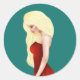 Schöne Blonde Lady in Red Gown spielt Karten Runder Aufkleber