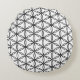 Rundkissen mit Blume des Lebensmusters. Dieses elegante Design in Schwarz-Weiß-Farben gehört zur heiligen Geometrie. Die Blume des Lebensmusters soll Heilung und Harmonie bringen. Jede Kreuzung von Kreisen bildet den Stern von David.